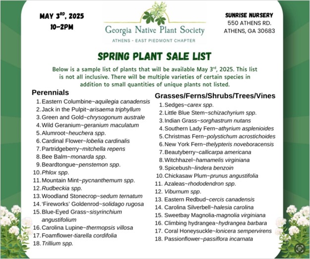 The Athens-East Piedmont Chapter of the Georgia Native Plant Society