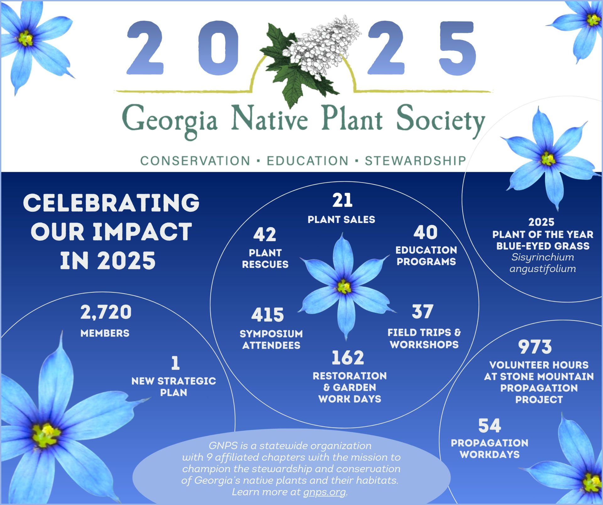 Progress on our mission to champion the stewardship and conservation of Georgia’s native plants and their habitats has been made because of the generosity of GNPS members and friends. Thank you for considering a donation!