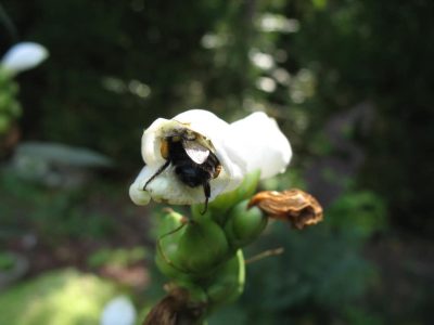 White turtlehead (Chelone glabra) grows in sun to partial shade; soil should be consistently moist; best in wet, rich, humusy soil in partial shade; likes composted leaf mulch in sunny areas. It is the host plant for the Baltimore Checkerspot butterfly; tall, upright stems with showy flowers on the ends.