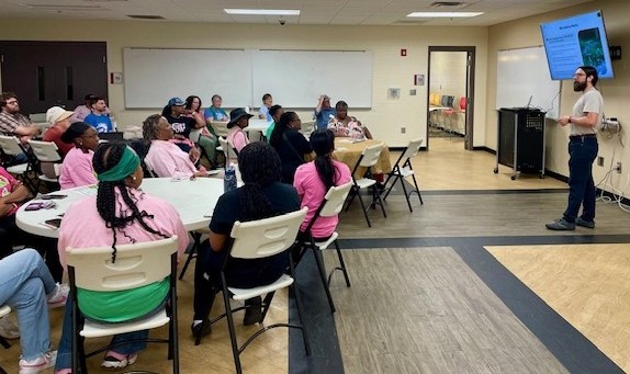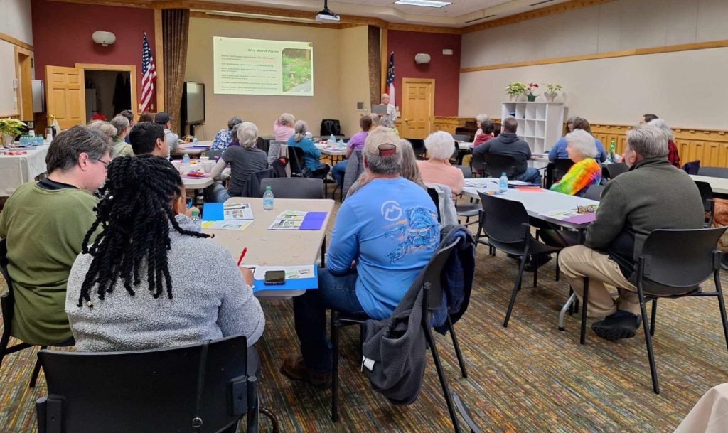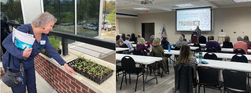 After hearing from the GNPS presenter, participants received customized “How to Get Started with Native Plant” handouts and a plant or two to take home. Plant species that were given away included lanceleaf coreopsis (Coreopsis lanceolata), whorled coreopsis (Coreopsis verticillata), cardinal flower (Lobelia cardinalis), frog fruit (Phyla nodiflora), orange coneflower (Rudbeckia fulgida), and black-eyed susan (Rudbeckia hirta). These were sourced from GNPS propagation operations at Stone Mountain Propagation Project, the Coastal Plain Chapter’s propagation site, and Juniper Creek Natives, partner of the Fringed Campion Chapter.