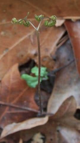 Deciduous; black stems; horseshoe-shaped frond with 3-5 finger-like divisions; forms clumps